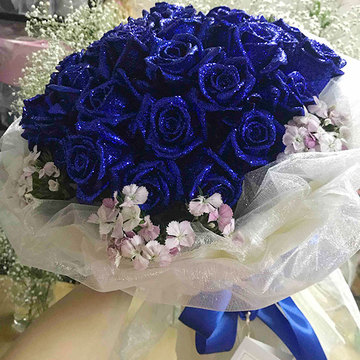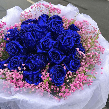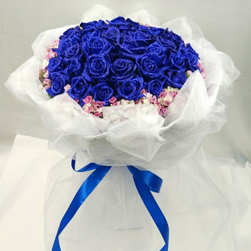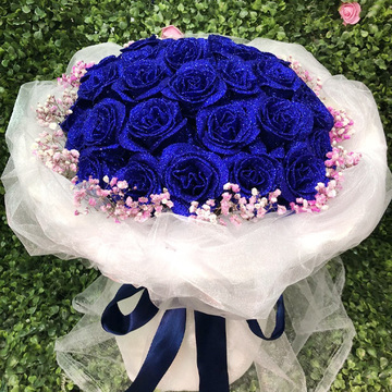 • 花材33朵蓝色妖姬,粉色石竹梅围边